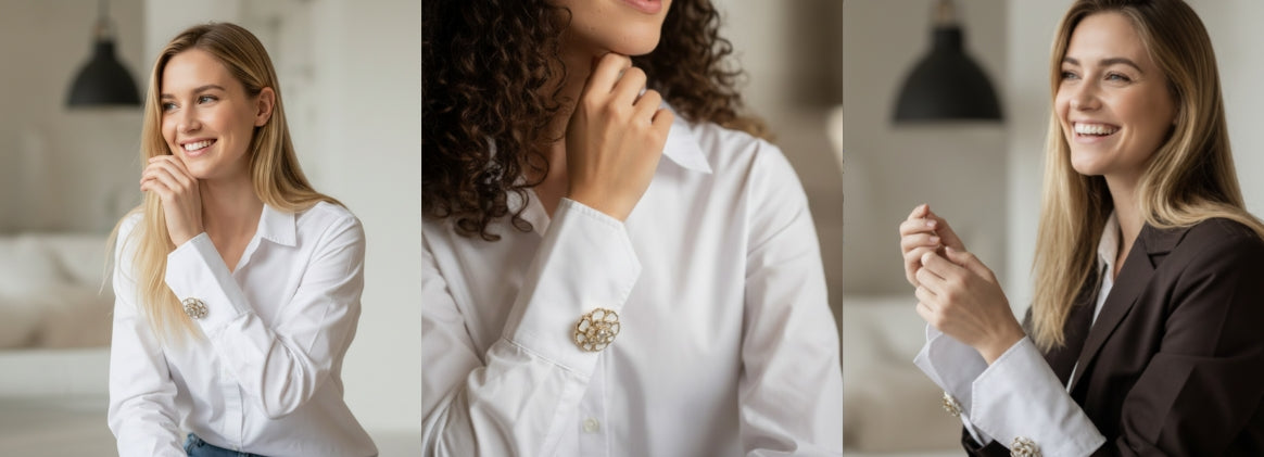 Née en Suisse, Boutons Chics est née d’une idée simple : transformer une chemise classique grâce à un détail discret mais remarquable. Pensés pour les femmes qui aiment le chic , nos couvre-boutons apportent caractère, douceur et modernité à chaque tenue, en un geste. Parce que ce n’est pas l’ensemble qui fait l’allure, mais le détail juste avec élégance.